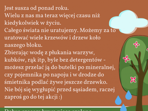Chociaż obecnie wszyscy jesteśmy skoncentrowani na zagrożeniu związanym z pandemią COVID-19, to jednak musimy zwrócić uwagę na inną bardzo trudną sytuację, jaką jest grożąca nam w tym roku susza. Już teraz naukowcy ostrzegają, że tegoroczna susza może być największą od 100...
