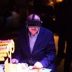 Dodatkową atrakcją tegorocznej Gali było również stoisko z filmem w technologii VR, na którym można było zobaczyć przebieg jednych z warsztatów plastycznych „Słoneczna Galeria” odbywających się w naszej placówce. Dzięki przestrzenności obrazu, widz mógł poczuć się jak jeden z uczestników zajęć. Na tych właśnie zajęciach powstała praca Piotra Turka, która została wylicytowana na kwotę 20000 zł.
