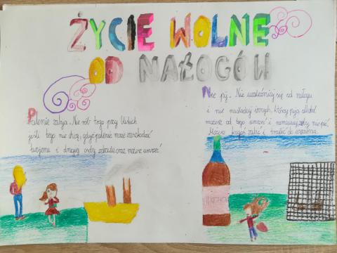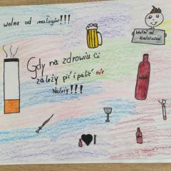 W lutym wychowankowie naszej szkoły wzięli udział w akcji „Życie wolne od nałogów!”. Celem przedsięwzięcia jest propagowanie zdrowego stylu życia bez sięgania po środki uzależniające jak papierosy, alkohol, narkotyki czy popularne w ostatnim czasie dopalacze. Podczas trwającej tydzień akcji uczniowie zostali zapoznani z mechanizmami uzależnienia od wszelkich środków psychoaktywnych, zarówno z przyczynami, jak i skutkami życia w nałogu oraz wzięli udział w treningu asertywności, aby skutecznie radzić sobie z presją rówieśniczą. Tydzień profilaktyki zakończył się po raz kolejny konkursem pod hasłem „Życie wolne od nałogów”. Uczniowie mieli za zadanie rozwiązać test wiedz z zakresu profilaktyki uzależnień oraz wykonać pracę plastyczną, mającą zniechęcić młodych ludzi do sięgania po używki. Pomysłów było wiele! Niektórym ciężko było się zdecydować, ale finalnie powstało wiele ciekawych i mądrych prac. Wszystkim uczestnikom serdecznie gratulujemy!!!