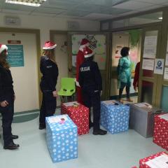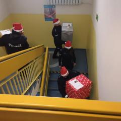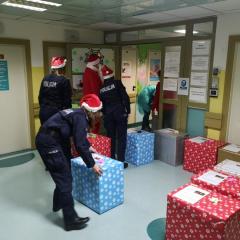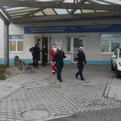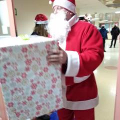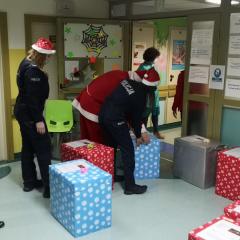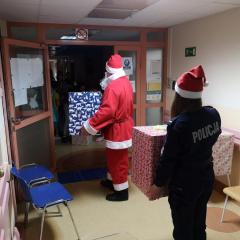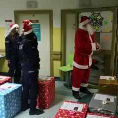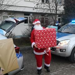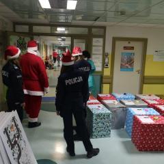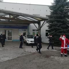Policjanci z II Komisariatu Policji w Kielcach zrobili (zresztą jak co roku o tej porze) naszym podopiecznym wspaniałą niespodziankę. 6 grudnia po południu przywieźli swoimi radiowozami paczki dla dzieci oraz samego Świętego Mikołaja. Tym razem dostojny gość zamienił swój orszak reniferów na policyjny radiowóz. W asyście mundurowych z użyciem sygnałów świetlnych i dźwiękowych policyjnych aut, przybył pod szpital dziecięcy, aby obdarować wszystkie dzieci prezentami.