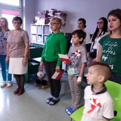 W piątek 8 listopada w wielu polskich szkołach i przedszkolach zabrzmiał Mazurek Dąbrowskiego w ramach akcji „Szkoła do hymnu”. Przedsięwzięcie to jest kontynuacją ubiegłorocznej inicjatywy „Rekord dla Niepodległej”, w której wzięło udział ponad 5 milinów uczniów i nauczycieli z ponad 24 tysięcy placówek. Inicjatorem akcji jest Minister Edukacji Narodowej Edukacji oraz Rada Dzieci i Młodzieży przy Ministrze Edukacji Narodowej. Celem inicjatywy jest zachęcenie do wspólnego przeżywania Narodowego Święta Niepodległości oraz kształtowanie szacunku wobec polskich symboli narodowych. Piątek, to ostatni dzień roboczy przed Świętem Niepodległości, dlatego właśnie wtedy, zgłoszone szkoły o godzinie 11.11 odśpiewały cztery zwrotki polskiego hymnu. Nasza szkoła również wzięła udział w tym ważnym i uroczystym przedsięwzięciu. Uczniowie, nauczyciele, rodzice, opiekunowie, personel medyczny oraz wszyscy goście przebywający tego dnia w szpitalu zostali zaproszeni do wspólnego odśpiewania Hymnu Państwowego Rzeczypospolitej Polskiej. To była bardzo wyjątkowa i uroczysta chwila.