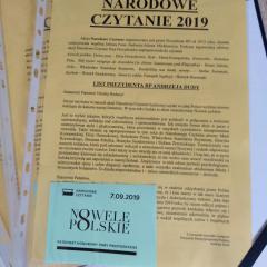 Podczas tegorocznej odsłony akcji Narodowe Czytanie Para Prezydencka zaproponowała do czytania Nowele Polskie. Prezydent Andrzej Duda z Małżonką dokonali wyboru z ponad stu propozycji tytułów przesłanych do Kancelarii Prezydenta.