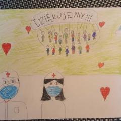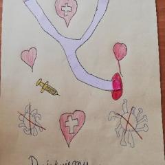 12 maja to bardzo ważna data w naszym szkolnym kalendarzu. Tego dnia bowiem obchodzony jest w Polsce Międzynarodowy Dzień Pielęgniarki i Położnej. Każdego roku staramy się, aby tego szczególnego dnia wszystkie panie pielęgniarki i panowie pielęgniarze otrzymali od swoich podopiecznych dużo serdecznych życzeń. W tym celu podczas zajęć szkolnych nasi uczniowie przygotowują dla białego personelu piękne kartki okolicznościowe, laurki i kwiaty. W tym roku, ze względu na izolację i zdalne nauczanie, nie możemy przygotować takich kartek wspólnie z uczniami. Zachęciliśmy jednak dzieci do samodzielnego wykonania prac plastycznych dla medyków, udzielając rad i wsparcia za pomocą multimediów. To były takie warsztaty plastyczne online. Dzieci bardzo chętnie wykonały autorskie prace dla tych, którzy tak troskliwie i z dużym poświęceniem towarzyszą ludziom w chorobie.