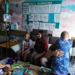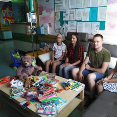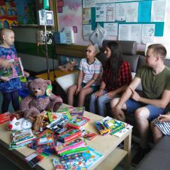 Pani Paula i Pan Marcin to para nowożeńców, która niedawno odwiedziła naszą szkołę. Wizyta ta była bardzo przyjemna, ponieważ nasi goście przybyli do szpitala z prezentami dla małych pacjentów. Państwo młodzi chcieli w wyjątkowy sposób uczcić dzień zaślubin, dlatego poprosili swoich gości, żeby zamiast kwiatów przynieśli coś, co sprawi radość innym i będzie bardziej trwałe. Goście zaskoczyli inwencją. Przynosili kredki, farby, bloki rysunkowe, książeczki do kolorowania, gry planszowe, puzzle, pluszaki oraz różnorodne zabawki. Para młoda postanowiła przekazać to, co dostała naszym podopiecznym, aby w ten sposób umilić im pobyt w szpitalu. To wspaniałe, że planując tak ważny dzień, państwo młodzi znaleźli czas i chęci, aby pomyśleć o innych. Ten bezinteresowny gest sprawił małym pacjentom ogromną radość.
