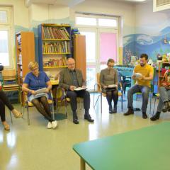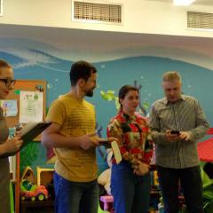 Do czytania tej historii z morałem z pełnym zaangażowaniem przystąpili: doktor Grażyna Karolczyk, społecznik Jerzy Pyrek, a także Mateusz Witek oraz rzecznik prasowy Wojewódzkiego Szpitala Zespolonego Anna Mazur-Kałuża. Pod koniec spotkania mieliśmy możliwość wysłuchania fragmentu bajki w języku hiszpańskim, który przeczytała Laura Gómez Domínguez, nasz specjalny gość z Hiszpanii. Spotkanie było okazją nie tylko do wysłuchania ciekawej lektury, ale także do interesujących rozmów i zabaw. Wszystkim bardzo się podobało i już czekamy na kolejne.