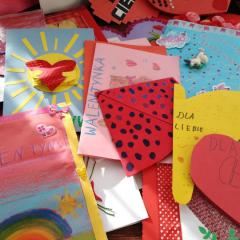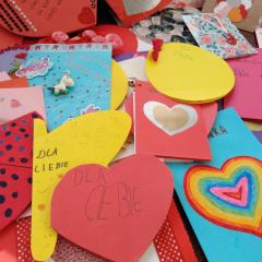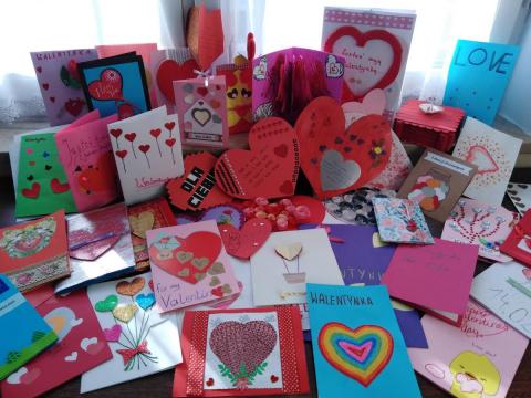 Nasi uczniowie otrzymali także przepiękne kartki walentynkowe od swoich rówieśników ze Szkoły Podstawowej im. Antoniego Wacińskiego w Bodzentynie. Uczniowie tej szkoły (podobnie jak w roku ubiegłym) wykonali pod kierunkiem nauczycielki plastyki pani Joanny Szydy oryginalne walentynki z autorskimi życzeniami i pozdrowieniami dla chorych dzieci. Była to wspaniała niespodzianka dla wszystkich!