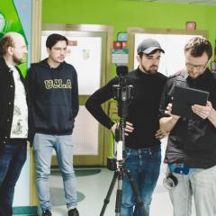 Najwyższy czas uchylić rąbka tajemnicy i zaprezentować fotorelację z wizyty w naszej szkole ekipy filmowej z Fundacji Urtica. 17 października na oddziale onkologii i hematologii dziecięcej odbyły się kolejne warsztaty plastyczne na potrzeby Słonecznej Galerii. Nie były to jednak zwykłe zajęcia. Tym razem świetlica szpitalna zamieniła się w plan filmowy, a panie prowadzące zajęcia i uczniowie w nich uczestniczący – w aktorów. Wszystko, co tego dnia działo się podczas warsztatów zostało nagrane przez profesjonalną ekipę filmową. Z tego nagrania ma powstać film na potrzeby 22 Galii Fundacji Urtica. Celem filmu jest pokazanie, jak powstają dzieła na aukcję, ile wysiłku młodzi artyści wkładają w wykonanie swoich prac oraz, a może przede wszystkim- jaka atmosfera panuje podczas takiego tworzenia. Ten wyjątkowy dzień nasi uczniowie będą długo pamiętać. Nie tylko sprawdzili się w roli aktorów, ale także mieli okazję zobaczyć, jak pracują filmowcy, jak wygląda profesjonalny sprzęt do tworzenia filmu. Panowie z ekipy pokazali nam wszystkie urządzenia, tłumaczyli co do czego służy oraz odpowiadali na niezliczoną ilość pytań. Wizyta trwała do późnych godzin wieczornych, gdyż po skończonej pracy nasi goście bawili się z dziećmi, grali w gry i opowiadali ciekawe historie ze świata filmu.
