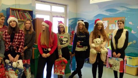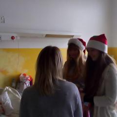 19 grudnia naszych uczniów odwiedziła młodzież z I L.O. im. Juliusza Słowackiego ze Skarżyska – Kamiennej. Wizyta ta była dla małych pacjentów bardzo miłą niespodzianką- każdy otrzymał wspaniały prezent (pluszaki, gry planszowe, książki, kredki, itp.). Koleżanki i koledzy ze Skarżyska zorganizowali także na świetlicach szpitalnych gry i zabawy dla wszystkich oraz czynnie włączyli się w zajęcia świetlicowe, które tego dnia odbywały się pod hasłem „Na czym polega istota Świąt Bożego Narodzenia?”.