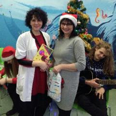 Na koniec spotkania odbyło się wspólne kolędowanie z akompaniamentem gitar. Nasi uczniowie odwdzięczyli się gościom obdarowując ich własnoręcznie wykonanymi ozdobami choinkowymi oraz kartą świąteczna z życzeniami. Składamy serdeczne podziękowania uczniom i nauczycielom I L.O. za zorganizowanie tej wspaniałej akcji, która pozwoliła naszym podopiecznym poczuć świąteczną atmosferę i choć na chwilę oderwać myśli od choroby.