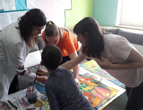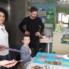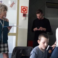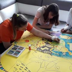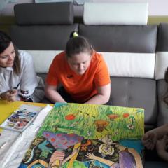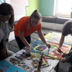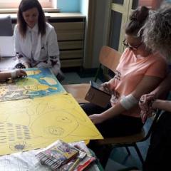Podczas warsztatów plastycznych nasi uczniowie wykonali kolejne prace do Słonecznej Galerii. Za pomocą farb, flamastrów, kredek i wycinanek stworzyli wielobarwne dzieła. Zajęcia tego dnia miały niecodzienną oprawę, gdyż odwiedzili nas goście z Fundacji Urtica. Była to bardzo miła wizyta dla wszystkich, szczególnie dla naszych artystów. Goście podziwiali prace małych pacjentów, byli pod wrażeniem ich determinacji w tworzeniu oraz optymizmu i radości mimo choroby.