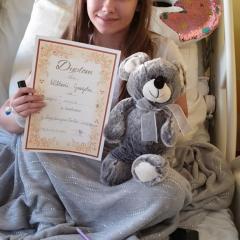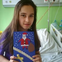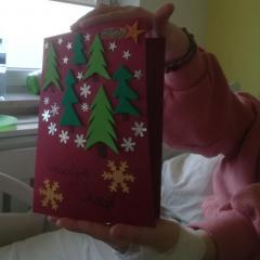 Atmosfera nadchodzących Świąt Bożego Narodzenia stała się inspiracją dla naszych uczniów do tworzenia oryginalnych kartek świątecznych. Na szczęście, w dobie rozwoju informatyki, nie zapominamy o wysyłaniu kartek tradycyjną drogą – czyli przez listonoszy. Adresaci niejednokrotnie zachwyceni ich wykonaniem oraz treścią życzeń, zatrzymują je na długo. Najpiękniejsze kartki świąteczne to te, które są wykonane własnoręcznie, ozdabiane różnymi technikami, z życzeniami płynącymi prosto z serca. I właśnie takie piękne kartki wykonali nasi uczniowie podczas zajęć. Wszystkie zostały zgłoszone do zorganizowanego już po raz kolejny konkursu pod hasłem "Najpiękniejsza kartka świąteczna". Jury miało nie lada wyzwanie, aby wybrać zwycięzców. Laureaci otrzymali pamiątkowe dyplomy i nagrody rzeczowe. Wyróżnione kartki zostały wręczone personelowi medycznemu na wszystkich oddziałach szpitalnych.