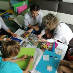 28 maja 2019 r. po raz kolejny mieliśmy przyjemność współpracować z Fundacją Urtica Dzieciom. Wraz z panią Oliwią zostały przeprowadzone warsztaty plastyczne dla dzieci na oddziale onkologicznym. Tematyka zajęć była dowolna. Kreatywność dzieci oraz efekty ich pracy przerosły nasze najśmielsze oczekiwania. Dzieci uczestniczące w zajęciach miały okazję rozwijania zdolności plastycznych poprzez nabywanie umiejętności samodzielnego i zespołowego współdziałania w procesie tworzenia. Twórczość plastyczna bowiem jest jedną z ważniejszych form działalności dziecka w wieku szkolnym.  Dzięki takim zajęciom dziecko nie tylko pobudza i wyraża swoje myśli i emocje ale również zaspakaja potrzebę ekspresji.